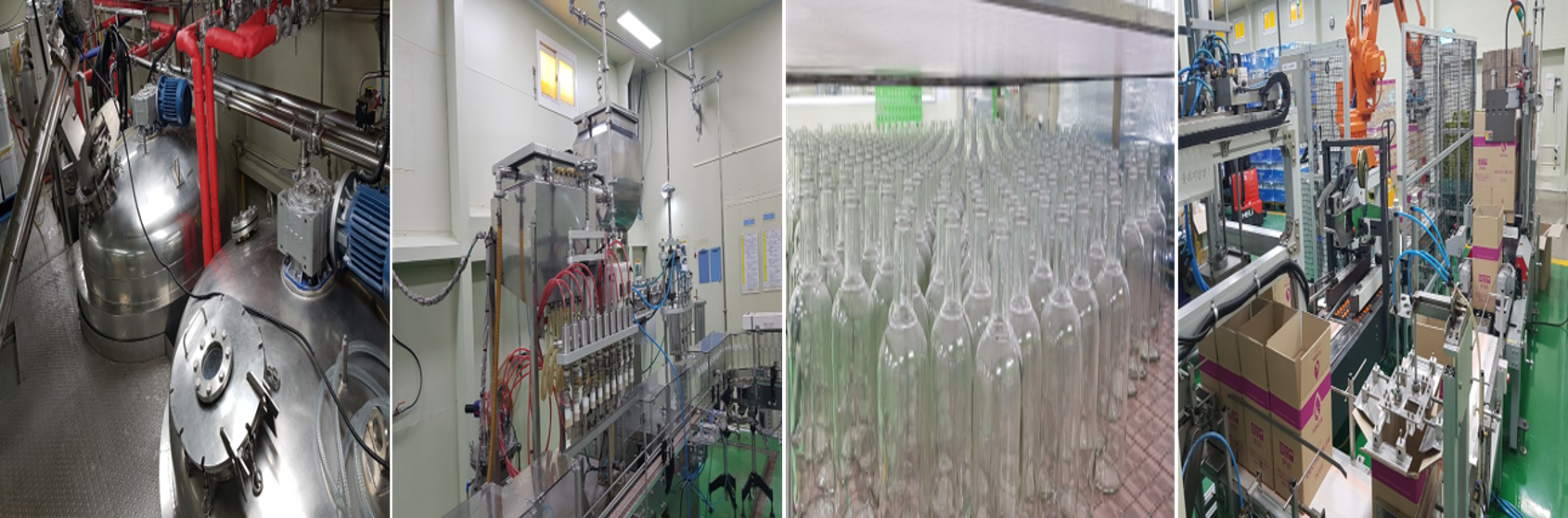 항온항습기, UV살균기, 호이믹서, 균질기, 로타리파우치 포장기, 금속검출기, 중량검출기, 3중필터 정수라인, 집진기, 에어샤워기 등
